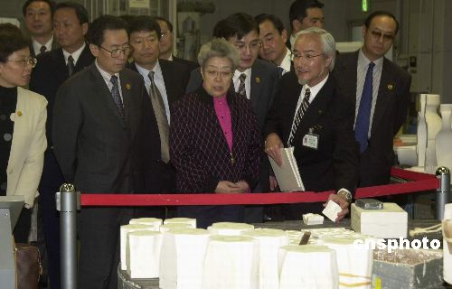 中國國務院副總理吳儀五月十八日在日本名古屋市參觀了著名的陶瓷工藝設施“則武工藝中心”。作者:王健