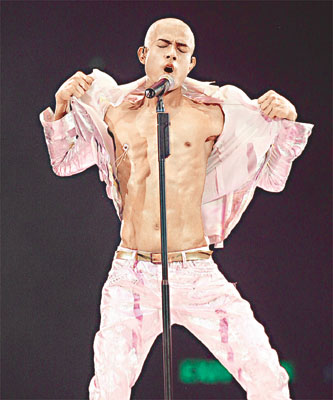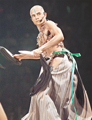 中新網6月2日電 據香港媒體報道,郭富城《舞臺寶典@飛越舞林演唱會2005二部曲》前晚于紅館開鑼,城城施展渾身解數,以無數個性感的突破熱爆會場,光頭造型戴乳飾露股肉加上欲望翼,都可見城城于舞臺上別具一格,造型獨特。