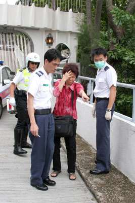 五十歲婦人趙×君向保安員要求與李嘉誠會見被拒絕后,報案聲稱被人擲石擊中頭部。