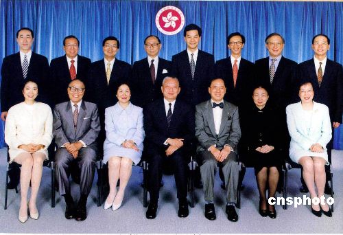 6月21日,國務院任命曾蔭權為香港特首。圖為1997年香港特區成立首屆行政會議成員合影。前排右三為曾蔭權。作者:中新社