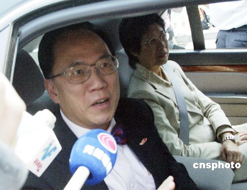 自動當(dāng)選并獲中央政府任命的香港特別行政區(qū)行政長官曾蔭權(quán),六月二十三日中午乘機抵達北京首都國際機場。曾蔭權(quán)將于二十四日參加在人民大會堂舉行的宣誓就職儀式。圖為曾蔭權(quán)抵達機場后接受媒體采訪。作者:錢興強