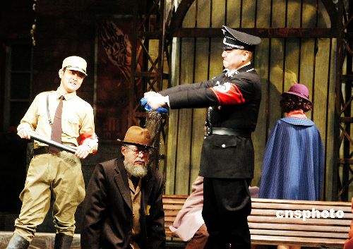 北京首都劇院六月上演經(jīng)典話劇《屠夫》,以紀(jì)念反法西斯戰(zhàn)爭勝利60周年。北京80高齡的老藝術(shù)家朱旭、鄭榕、周正傾情演出。《屠夫》以第二次世界大戰(zhàn)中德意志帝國統(tǒng)治下的奧地利為背景,講述維也納的一個(gè)普通家庭被卷入法西斯專政政治旋渦中的故事。作者:王麗南