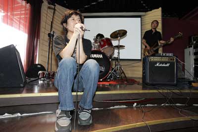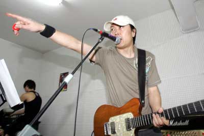 在女人街的一酒吧內,燙著卷發的鄭鈞神采奕奕地出現在記者面前。不過這一回他不得不坐在地上排練了:“我前天去爬山,爬了7個鐘頭啊,下山的時候腿受傷了,現在下樓梯都不能彎。”鄭鈞向記者們“展示”了他的搖滾版《喀秋莎》。