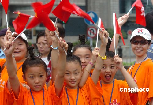 中新社香港七月一日電(記者文青)今天是香港回歸八周年,灣仔金紫荊廣場舉行升旗儀式,曾蔭權首次以行政長官身份,聯同剛獲委任為政務司司長的許仕仁,以及其他特區主要官員出席儀式,另有二千五百名嘉賓應邀出席,近一千名市民在場觀看,場面盛大和熱鬧。