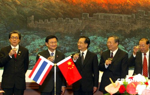 溫家寶指出,鞏固和發(fā)展中泰睦鄰友好合作是中國(guó)政府的既定政策,中方愿與泰方一道繼續(xù)努力,全面推進(jìn)中泰友好合作。溫家寶在會(huì)談中對(duì)中泰關(guān)系的未來(lái)發(fā)展提出以下希望:一是以中泰建交30周年為契機(jī),進(jìn)一步加深兩國(guó)戰(zhàn)略性合作關(guān)系,及時(shí)就重大國(guó)際和地區(qū)問(wèn)題交換意見;二是加強(qiáng)兩國(guó)企業(yè)界的聯(lián)系,不斷優(yōu)化貿(mào)易結(jié)構(gòu),探索新能源的開發(fā)與利用,提高經(jīng)貿(mào)合作水平;三是深化兩國(guó)安全合作,促進(jìn)文化、旅游的交流與交往;四是積極落實(shí)中國(guó)與東盟戰(zhàn)略伙伴關(guān)系行動(dòng)計(jì)劃,推動(dòng)亞洲區(qū)域合作不斷向前發(fā)展。