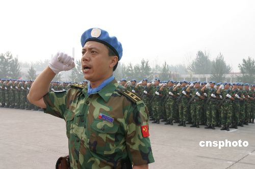 這次赴利比里亞的維和分隊包括一個240人的運輸分隊、一個275人的工兵分隊和一個43人的醫療分隊,分別隸屬總后勤部、沈陽軍區和南京軍區。他們分兩個梯隊啟程,第二梯隊維和官兵279人將于7月19日出發。三支維和分隊出發前分別舉行了莊嚴的出征誓師大會。