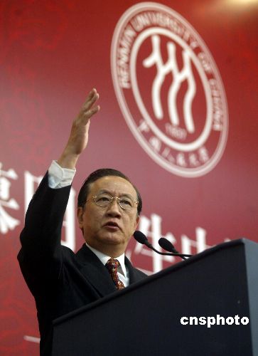 中新社北京七月十二日電 題:郁慕明人民大學演講:溫情·動情·激昂·激憤