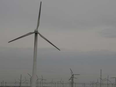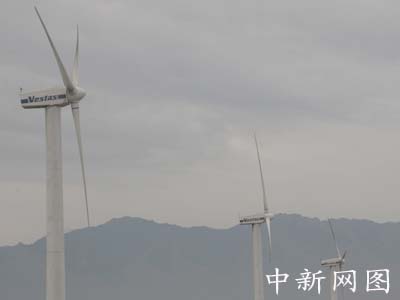 在從烏魯木齊去吐魯番的路上,一大片風力發電機挑起了不少游人的興趣。