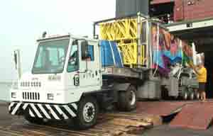 環(huán)球嘉年華首批設(shè)備運(yùn)輸車隊(duì)由56輛車組成,運(yùn)送20呎和40呎兩種集裝箱共278個(gè),另有71個(gè)異型貨柜。7月10日17時(shí),這些設(shè)備在天津港裝車出發(fā),走京津塘高速公路到達(dá)北京,于當(dāng)天23時(shí)進(jìn)入2005北京環(huán)球嘉年華6萬(wàn)平米的活動(dòng)場(chǎng)地。