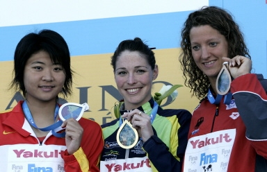 中新社蒙特利爾七月二十八日電(記者 夏宇華)十八歲的山東姑娘高暢不復昨日之勇,今天在女子五十米仰泳決賽中以零點零六秒之差敗在比她大五歲的澳大利亞選手魯尼手下,獲得一枚銀牌。