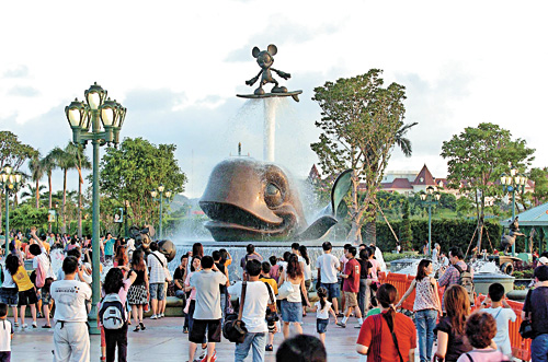 迪士尼站昨日全天均擠滿(mǎn)人群,猶如繁忙時(shí)間的地鐵車(chē)站一般,但秩序良好。香港地鐵公司表示,將來(lái)香港迪士尼樂(lè)園開(kāi)幕后,若出現(xiàn)人潮,會(huì)加密班次疏導(dǎo),必要時(shí)會(huì)關(guān)閉部分入閘機(jī)。