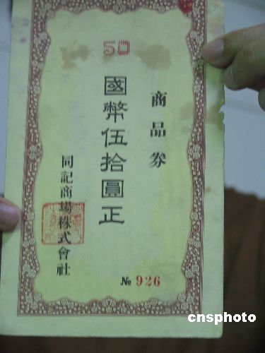 湖南省收藏協(xié)會(huì)理事闞志雄先生8月8日向記者展示了其收藏多年的“同記商場(chǎng)株式會(huì)社”商品券。該商品券反面左下角貼有一張橘紅色、面值五分的印花,上面寫(xiě)著“滿(mǎn)洲帝國(guó)收入印紙”。這成為當(dāng)年日本扶持偽政府、對(duì)華經(jīng)濟(jì)侵略的又一鐵證。作者:劉雙雙
