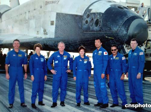發(fā)現(xiàn)號(hào)航天飛機(jī)自七月二十六日升空之后,繞地球飛行二百一十九圈,行程五百八十萬(wàn)英里。