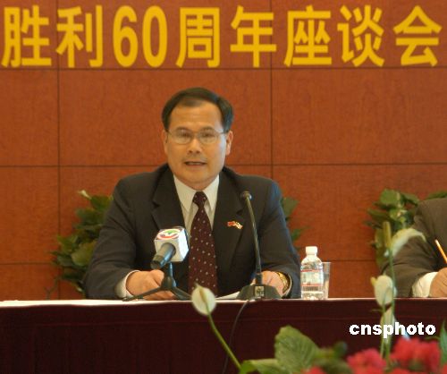 中國駐紐約總領(lǐng)館九日舉行座談會,紀(jì)念抗日戰(zhàn)爭暨世界反法西斯戰(zhàn)爭勝利六十周年,總領(lǐng)事劉碧偉發(fā)表講話。作者:譚宏偉