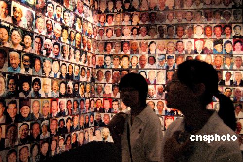 《12.13——侵華日軍南京大屠殺史實展》八月十日在北京開幕。該展作為中國人民抗日戰爭暨世界反法西斯戰爭勝利六十周年紀念活動的重要組成部分,以翔實的史料和豐富的文物向觀眾展示那段不容忘卻的歷史,以表達愛國、正義、和平的主題。圖為南京大屠殺幸存者照片。作者:徐曦弋