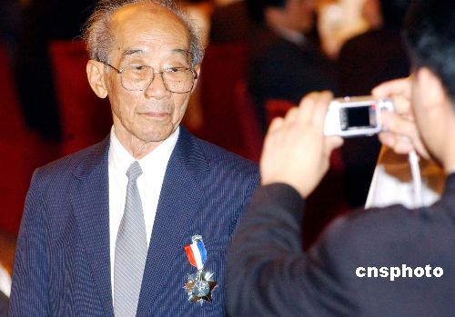 圖:獲得和平勛章的老戰士拍照留念