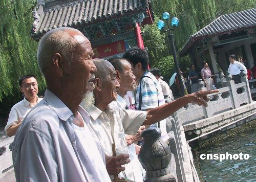 8月12日,為了慶祝抗戰(zhàn)勝利60周年,在山東省民政部門的組織下來自全省各地的十幾位老八路聚集濟(jì)南,暢游趵突泉美景。老戰(zhàn)友們六十年后重相聚,在一起觀看美麗的泉城風(fēng)光,追憶過去抗戰(zhàn)的歲月,重游戰(zhàn)斗過的地方,個(gè)個(gè)心潮澎湃。作者:周青先