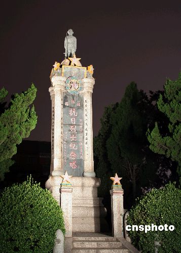 山東省日照縣抗日烈士紀念塔,1945年秋建,1946年6月落成,塔高10.5米,八路軍戰士雕像2.5米,總高13米。塔的東西兩面刻著自1932年日照暴動至抗戰結束犧牲的840名烈士的英名。作者:高興建