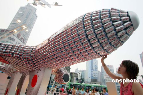 | 八月十六日,一架由數(shù)千罐“健怡可口可樂”組成的港龍航空A330飛機模型登陸上海港匯廣場,該飛機模型長八米、寬七點五米,完全按照真實的港龍A330飛機一比八比例打造,并由數(shù)十名能人巧匠花費十二天的時間,用“健怡可口可樂”易拉罐精心堆砌而成。這是可口可樂公司攜手港龍航空,首度合作推出今夏精彩紛呈的網(wǎng)上有獎競猜促銷活動,惟妙惟肖的造景飛機究竟用了多少罐“健怡可口可樂”搭建而成?作者:潘索菲