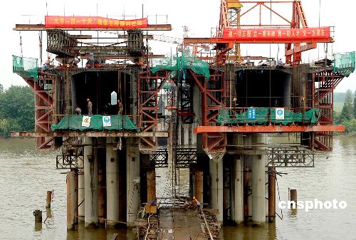8月17日,江蘇揚州京杭運河大橋建設開始進入上部箱梁澆鑄。該大橋是正在建設中的南京至南通公路上的重點工程,全長697米,經過15個月的建設,大橋下部結構已全面完工,上部箱梁澆鑄現以每周4米的速度向兩邊擴展,預計大橋將在11月底合攏。作者:張丙濤