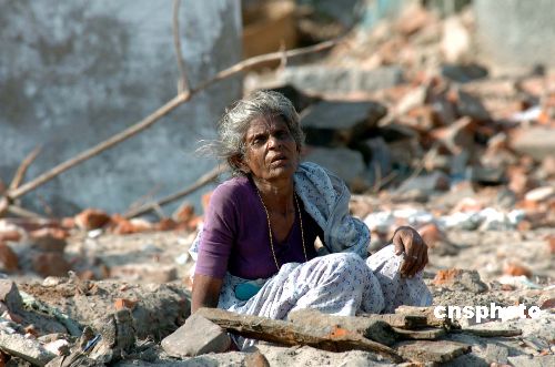 印度南部去年遭受世紀海嘯襲擊的納加帕蒂納姆鎮,如今災民生活仍然艱苦。