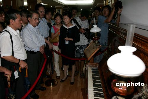 由中國國民黨臺中市黨部主任委員沐桂新率領的臺中市黨部訪問團八月二十五日下午在廈門參觀訪問。圖為沐桂新等參觀著名風景區鼓浪嶼上的鋼琴博物館。作者:毛建軍