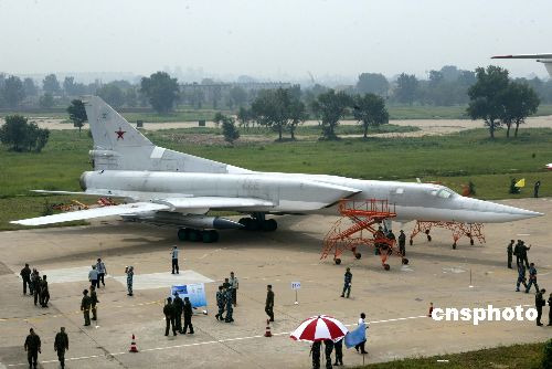 中新網(wǎng)8月26日電 26日上午,參加“和平使命-2005”中俄聯(lián)合軍事演習(xí)的俄羅斯空軍裝備在青島流亭機(jī)場進(jìn)行展示。中共中央政治局委員、中央軍委副主席、國務(wù)委員兼國防部長曹剛川觀看展覽。