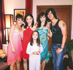 Jon(右起)本月17日生日,鐘麗緹和女兒Yasmine、新人Cassie、戴愛玲在北京開心慶生。