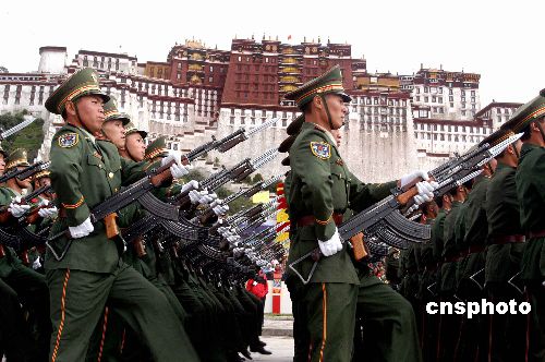 圖:西藏自治區成立四十周年游行彩排在拉薩舉行