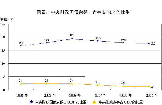 根據上述總體思路,2006年預算的主要指標安排如下:中央財政總收入19272.04億元,比2005年增加2022.25億元,增長11.7%。其中,中央本級收入18520.3億元,比2005年增加1984.36億元,增長12%。中央財政總支出22222.04億元,比2005年增加1972.63億元,增長9.7%。其中,中央本級支出9525億元,比2005年增加749.27億元,增長8.5%;對地方稅收返還和補助支出12697.04億元,比2005年增加1223.36億元,增長10.7%。中央財政收支相抵,赤字2950億元,比2005年預算減少50億元,財政赤字占GDP的比重預計進一步下降到1.5%。2006年,中央財政安排國債項目資金600億元,比2005年減少200億元(其中取消代地方政府發行國債100億元),同時增加中央預算內經常性建設投資100億元。中央財政國債余額35568億元,比2005年同口徑增加2954億元。匯總中央和地方財政收支安排,2006年全國財政收入35423.38億元,增加3795.4億元,增長12%;全國財政支出38373.38億元,增加4665.36億元,增長13.8%。
