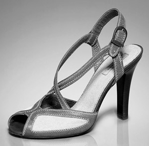 對晚宴鞋來說,今年春夏的時尚風(fēng)不知是喜是悲。悲的是,由于舞蹈鞋和楔跟鞋的沖擊,向來派對女主角的晚宴鞋,頗有冷落之意;喜的是,晚宴鞋在這個夏天開始走上街頭,與各類褲裝搭配,另打拼出一片天地。就款式而言,本季晚宴鞋沒有太多新意,無非是更加強調(diào)華麗,以金色、彩色系帶和丁字細高跟涼鞋為主,鑲有彩色水晶,充分發(fā)揮張揚之能事。不過,本季晚宴鞋最突出的款式是,腳踝處的搭襻細跟涼鞋,絕對比高跟涼拖更為搶眼。