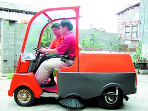 3年來,他們相繼從家中拿出了準(zhǔn)備買新房的近30萬元積蓄用于研究。2008年底,經(jīng)過多次改裝和調(diào)試,一輛“摩托掃地車”應(yīng)運(yùn)而生。2009年暑假,第一代小型電動(dòng)清掃車終于問世。