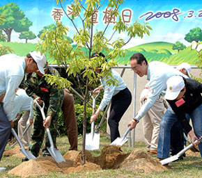 中新網3月31日電 據香港特區政府網站消息,香港“2008年植樹日”日前在東涌白芒舉行,栽種逾萬株樹苗,并把植樹范圍命名為“奧運林”,營造奧運氣氛及推動“綠色奧運”。