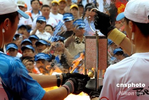 圖:奧運圣火在中國革命圣地井岡山燃燒