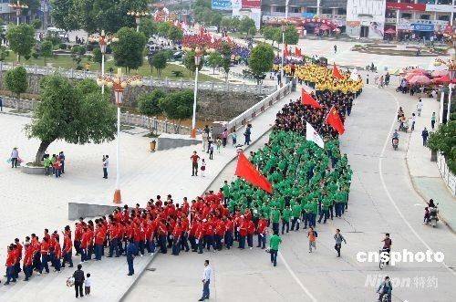 5月16日,地處偏僻山區(qū)的江西德興銅礦2008名礦山職工參加“全民健身與奧運同行”活動,以健步行、編五環(huán)等形式,傳遞奧運精神,支持北京奧運會,表達礦工喜迎奧運的心情。 中新社發(fā) 胡敦煌 攝