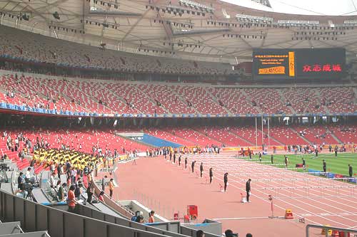 中新網(wǎng)5月22日電 在結束了為期三天的舉國哀悼之后,今早9點,第一項比賽女子七項全能100米欄開始如期在“鳥巢”進行,中國田徑公開賽正式開始。