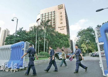 酒店門口21日有保安員站崗,酒店外圍圍起鐵馬和鐵絲網,酒店附近一段白鶴汀街會在周四開始封閉,行人路和巴士站亦會暫停使用。