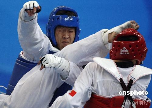 朱國將代表中國出戰北京奧運會跆拳道男子80公斤級比賽。中新社發 杜洋 攝