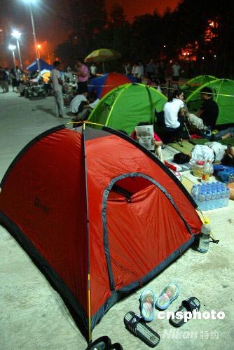 圖:北京民眾支起帳篷待購奧運門票