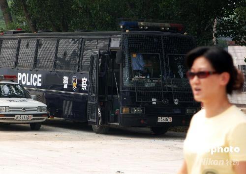 停在賣票點(diǎn)附近的防爆警車。中新社發(fā) 王東明 攝