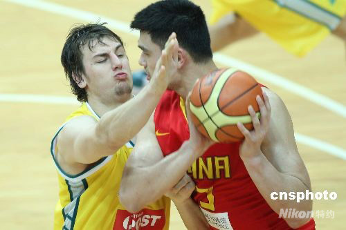 圖為姚明與對方博格特在場上上演“狀元對決”。中新社發 盛佳鵬 攝