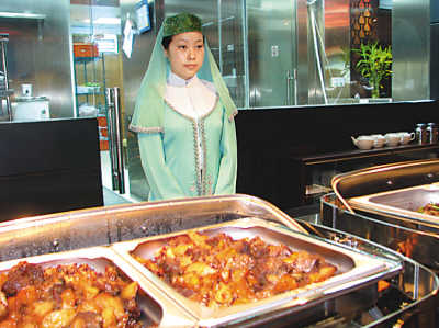 考慮到穆斯林的習俗,在餐廳旁邊還專門設立了禮拜室,每天都有來自清真寺的阿訇來帶領做禮拜。