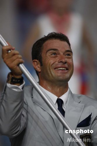 圖為入場儀式上意大利奧運代表團旗手皮劃艇名將羅西。中新社發 杜洋 攝