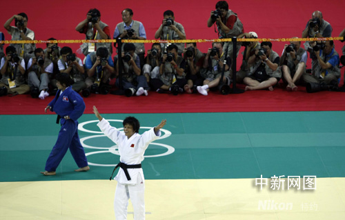 中新網8月10日電 在剛剛結束的奧運女子柔道52公斤級決賽中,衛冕冠軍、中國選手冼東妹擊敗朝鮮“黑馬”選手安琴愛,勇奪冠軍。