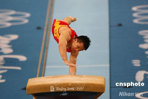 圖:中國勇奪體操男團金牌 陳一冰翻身上"馬"