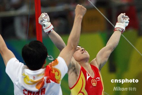 圖:中國勇奪奧運體操男團金牌