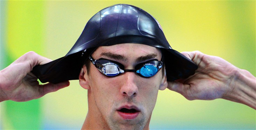 8月13日,美國泳壇“神童”菲爾普斯在拿下男子四乘兩百米自由泳接力賽金牌后,將個人奧運會金牌總數紀錄提高到了11枚,入水前菲爾普斯整理泳帽,看起來就像是王者的“加冕禮”。