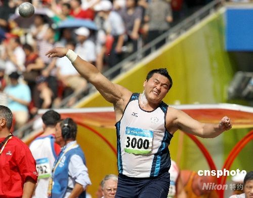 8月15日,北京奧運男子鉛球資格賽在國家體育場舉行,中華臺北隊張銘煌力拼前八強。中新社發 CNAsports 攝
