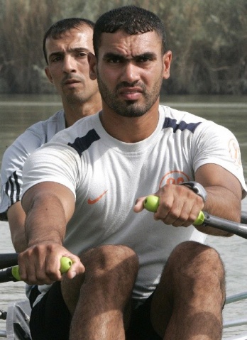 伊拉克賽艇運(yùn)動(dòng)員穿著舊T恤比賽。
