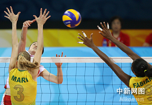 8曰21日,在剛剛結束的女排半決賽中,中國女排0:3負于巴西,無緣決賽。中新社記者 武仲林 攝